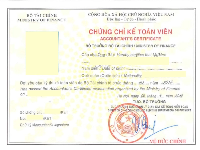 Mẫu chứng chỉ kế toán viên (Tham khảo)